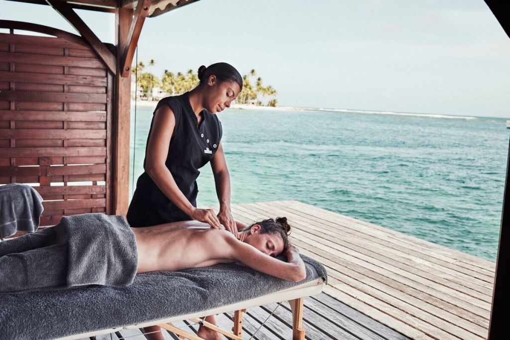 È un sogno la Club Med Spa by Sothys una costruzione in pietra lavica ispirata al vulcano La Soufrière nascosta tra la vegetazione tropicale con mobili in legno dal design minimalista con tocchi di rosa come le meravigliose bouganville di Guadalupa. Ci sono uno spazio dedicato all’hammam e doccia sensoriale, un salone di bellezza, un’area relax all’aperto, cinque cabine per i trattamenti. In più, per un relax mai provato, ci sono due palapas che si raggiungono con un pontile dove godersi rituali sospesi nell’acqua dei Caraibi.