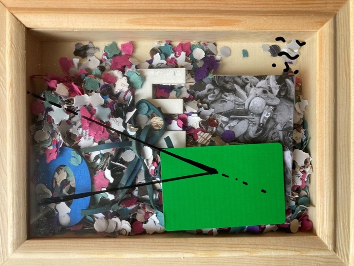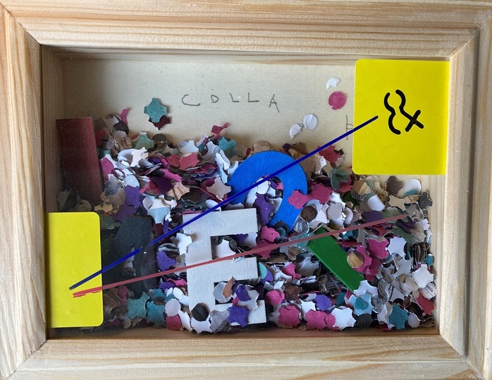 Nello spazio di una scatola (Frame): Protecting Small Boxes e frammenti di “micro-scritture” dove “cerco, all’interno dello spazio minimo e mentale di una scatola, nuove corrispondenze tra oggetti-parola e campi cromatici ricorrenti di cerchi e forme quasi quadratiche” (Sergio Armaroli) attraversando il mondo vocalico e cromatico per sovrapposizioni di piani e montaggio di luoghi. FUND/FOND: tra sfondo e reperto archeologico (guardando ai “microgrammi” di Robert Walser come omaggio all’opera di Joseph Cornell e alla sua toponomastica immaginaria).