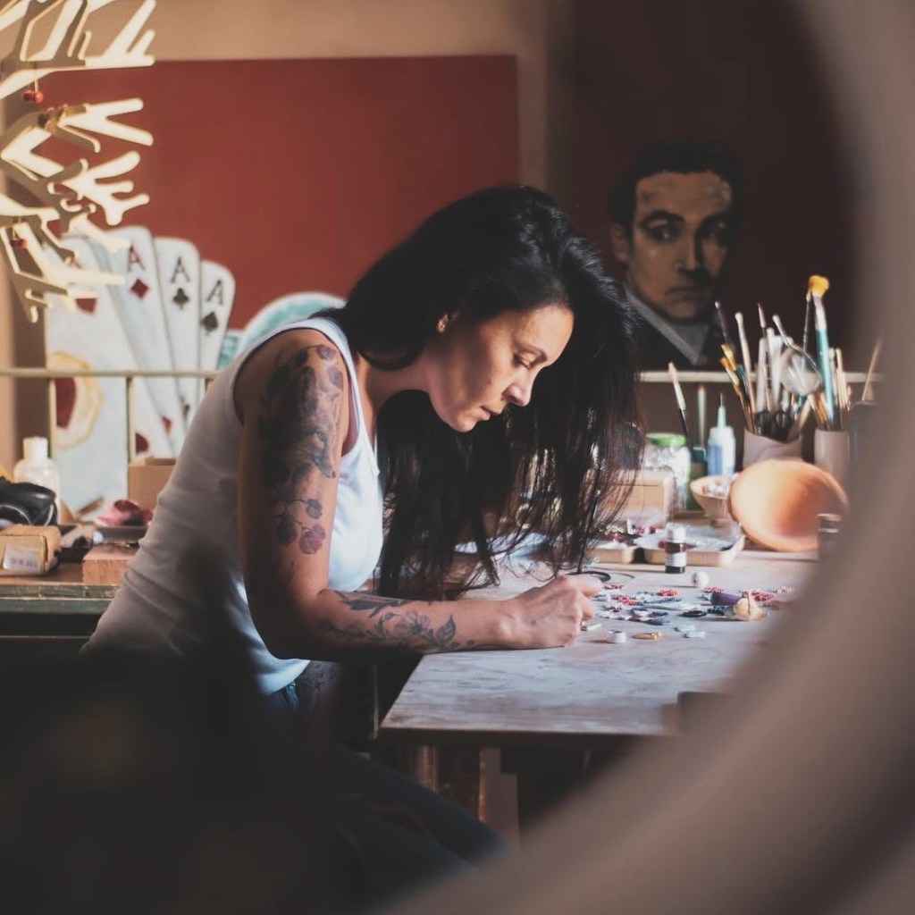 A Mola di Bari, nel suo laboratorio, sembra di entrare in un paese incantato, fatto di oggetti, dove la bellezza della terracotta, i colori, i giochi e la maestria della materia e delle forme si armonizzano con i cromatismi: il colore soprattutto, la luce e il colore che variano sul materiale, chiaroscuri impalpabili ed evanescenti che creano emozioni, gioielli finissimi, creativi e talentuosi, il tintinnio dei materiali che si sfiorano tra loro, e fuori, la vita e i rumori della strada.