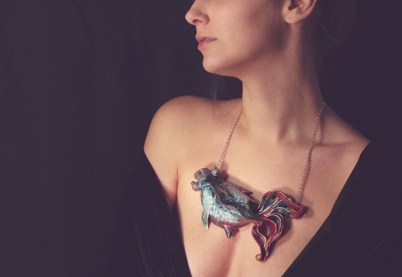 Per ogni sua creazione esiste una storia, un bagaglio di ricordi, la ricerca del bello nella sua versione più estrema, il tempo delle emozioni preservato, per un attimo, da sicuro oblio, chiuso nel colore, nella forma, nella materia. Ogni suo bijoux, concepito e sognato, prima ancora di essere realizzato, ha una iconicità tale che riesce a superare la pura funzionalità per la quale è stato creato: infatti la sua energia creativa è sicuramente arte, perché si deve definire arte ciò che dà un corpo ai sogni, che materializza le favole, che ruba al mare i suoi colori, alla natura la libertà, l’amore, la follia e la seduzione, con tanta leggerezza e delicata sensualità attraverso gli oggetti, bjioux tanto carichi e pesanti di significato ma leggeri da indossare.