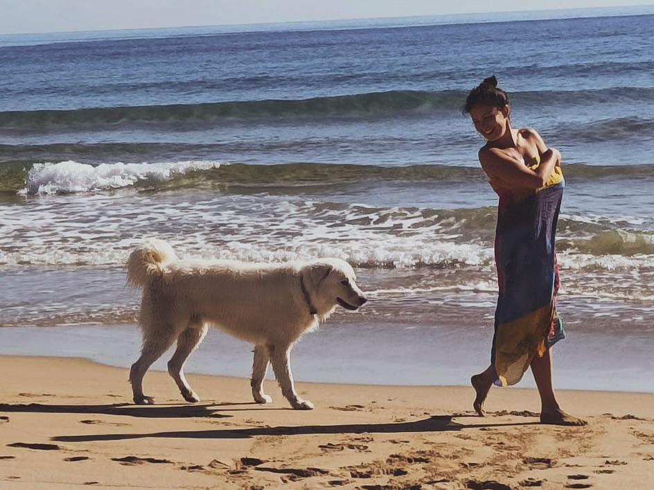 Vivere in simbiosi con tutto quello che la circonda, il mare, l’azzurro del cielo, le fatate e capricciose nuvole, le rose, i limoni e le ciliegie, i gatti, la natura intorno, il forno della terracotta, il cane, grande e tenera presenza fissa del mondo dell’artista, e poi l’amore…