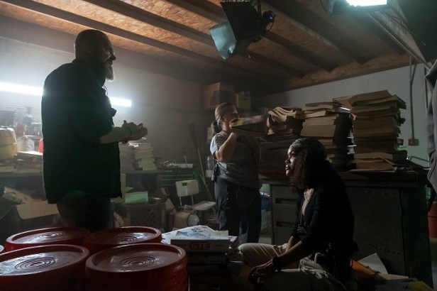 THE RIP. (L to R) Chris Centrella, Jayson Merrill, Cinematographer Juanmi Azpiroz and Russ Faust on the set of The Rip.Cr. Claire Folger/Netflix © 2025.