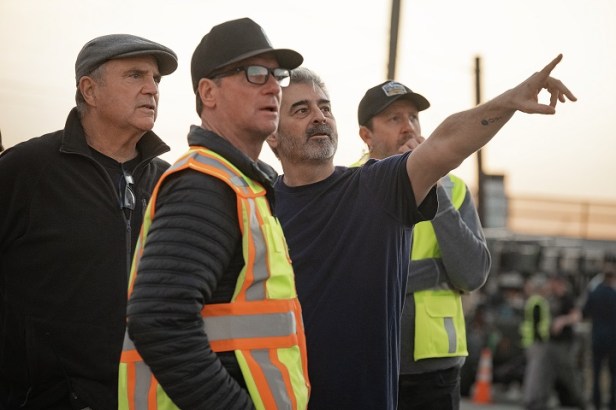 THE RIP. Writer/Director Joe Carnahan with crew members on the set of The Rip.Cr. Claire Folger/Netflix © 2025.