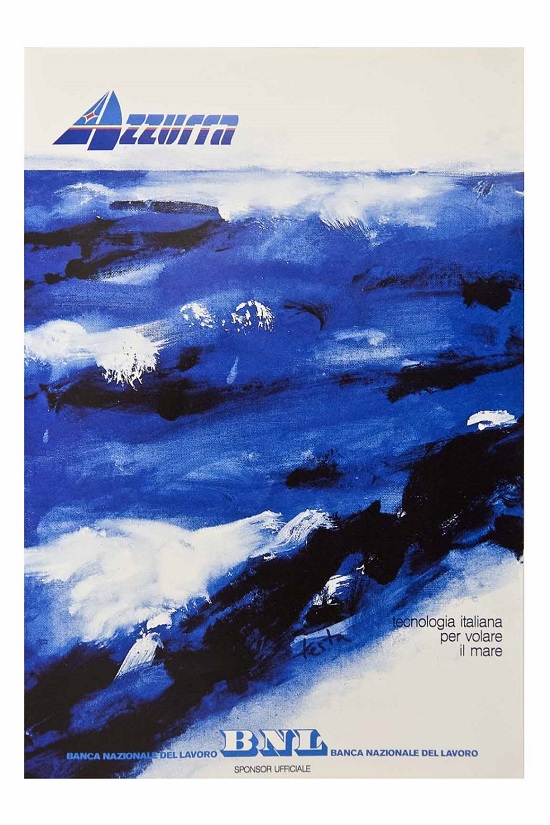 Negli anni Sessanta e Settanta, opere come Cervinia, il Grand Prix della Pubblicità (1974/1990) e l’8° Concorso Ippico Internazionale (1968) testimoniano una progressiva riduzione formale e una centralità sempre più assoluta dell’immagine, capace di fondere corpo, paesaggio e simbolo in una sintesi di grande forza visiva. Con Azzurra (1987) e Torino ’90, Testa consegna immagini emblematiche che elevano l’immaginario sportivo a icona culturale del suo tempo. Accanto ai manifesti, il celebre carosello Il treno per Saiwa (1966–1969) estende questa ricerca allo spazio filmico e performativo: corpi umani che si fanno macchina e movimento, anticipando sperimentazioni affini alle pratiche Fluxus e alle ricerche di John Cage. In questo dialogo continuo tra progetto, immagine e azione, lo sport si configura per Testa come un vero e proprio laboratorio di forme, idee e visioni.