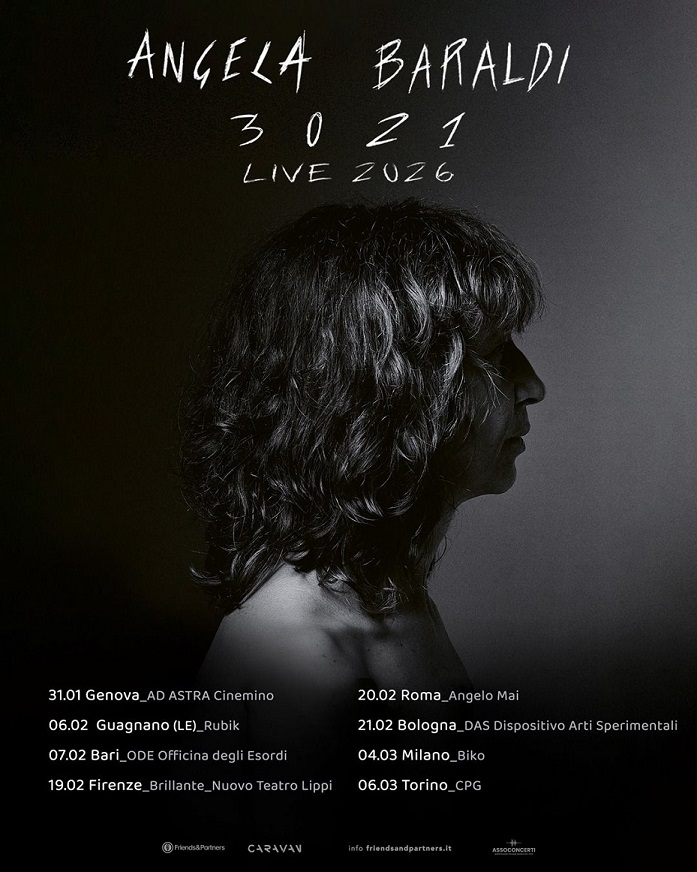 Angela Baraldi presenterà dal vivo “Cuore elettrico” e gli altri brani contenuti nel suo ultimo lavoro in studio con “3021 LIVE 2026”, il nuovo tour nei club italiani al via il 31 gennaio da Genova.