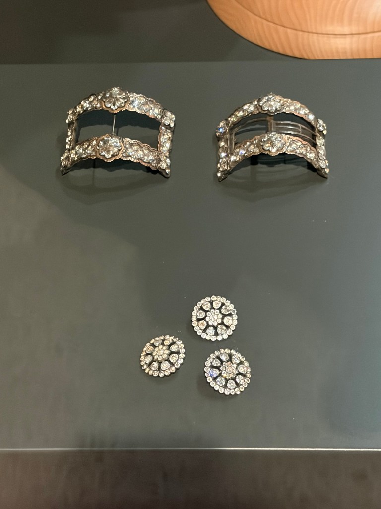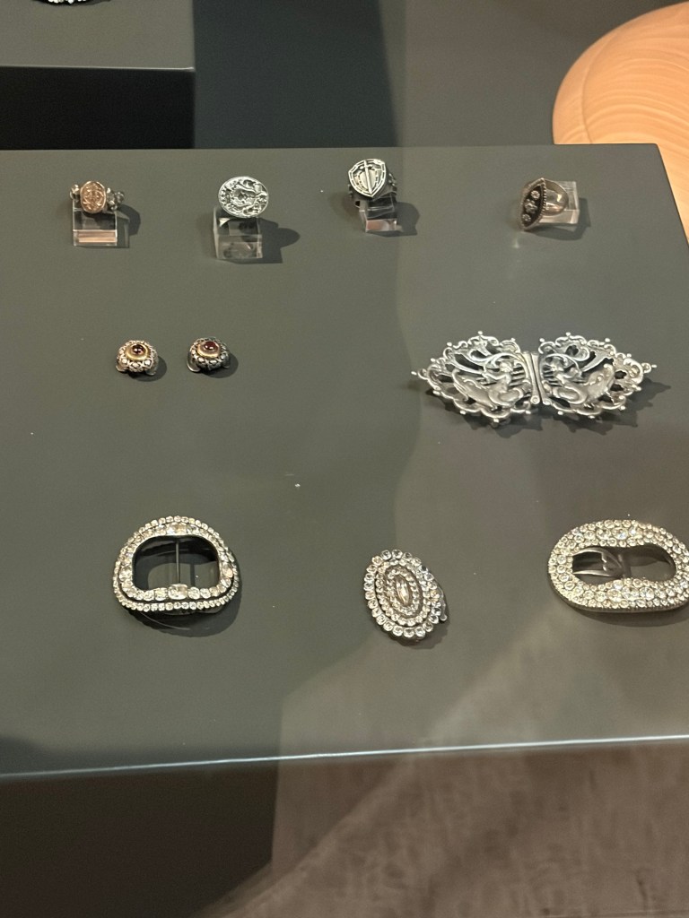 La mostra si apre con il XVIII secolo, un’epoca in cui l’uomo europeo delle classi alte indossa con naturalezza gioielli elaborati, accessori decorativi e abiti riccamente ornati. Anelli, pendenti a sigillo, fibbie, non sono soltanto oggetti di lusso, ma strumenti di comunicazione sociale e simbolica. L’ornamento in questo periodo è parte integrante dell’autorappresentazione maschile.