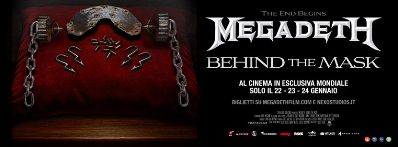 Distribuito a livello mondiale da Trafalgar Releasing, MEGADETH: BEHIND THE MASK è distribuito in esclusiva per l’Italia da Nexo Studios in collaborazione con i media partner Virgin Radio, MYmovies, Rock TV, Metalhammer, Classic Rock, Metalitalia.com e con BLKIIBLK e MC² Live.