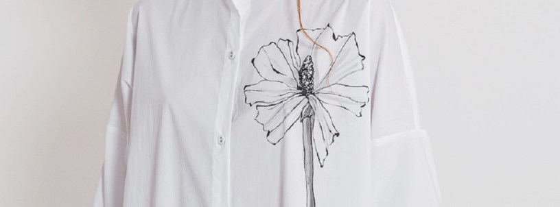 Nasce così una camicia bianca dipinta a mano, dove moda e arte si incontrano in un dialogo delicato, fatto di segni essenziali e significati profondi.