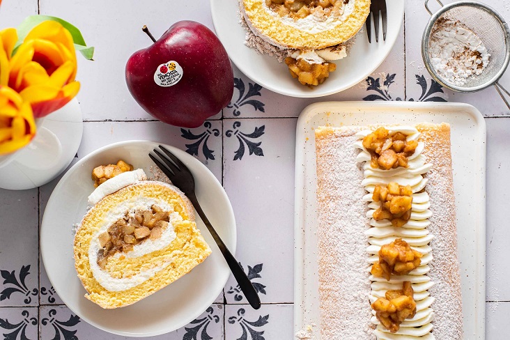 Ideale come dessert della domenica o per un pomeriggio in compagnia davanti a una tazza di tè, questo rotolo è una coccola irresistibile, da gustare freddo e da decorare con panna e mele speziate per un tocco scenografico che non passerà inosservato.