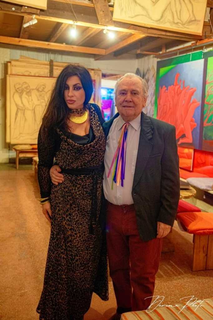 La sfilata si è svolta nella cornice bohemien e romantica dell’atelier Tinteri, una location di straordinario impatto emotivo. A fare da vero e proprio palcoscenico non sono state semplici quinte sceniche, ma le opere monumentali dell’artista, che hanno letteralmente avvolto e abbracciato ogni Dea del Colore, creando un dialogo visivo potente tra corpo, pittura e luce.