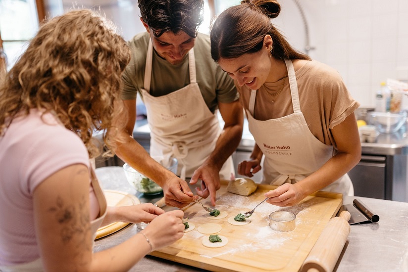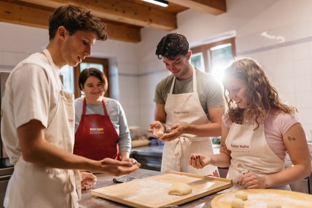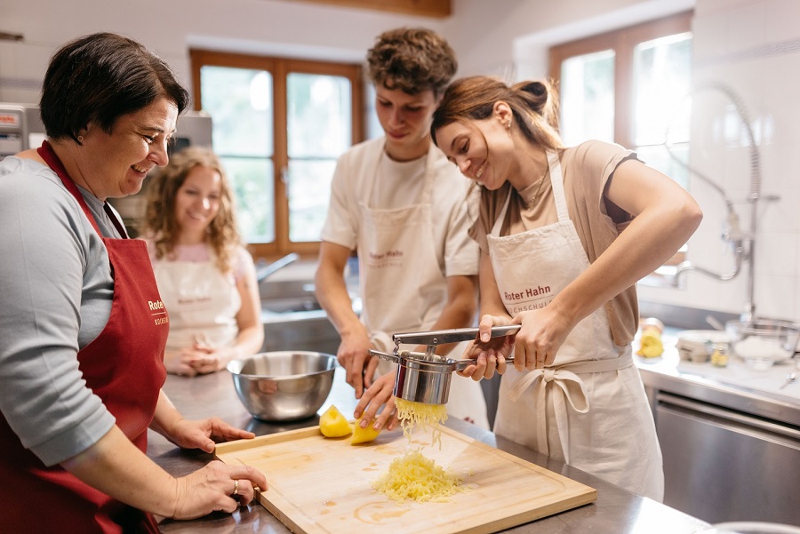 L’obiettivo della Scuola di Cucina del Gallo Rosso è chiaro: far conoscere e valorizzare la cucina contadina tipica dell’Alto Adige, capace di unire l’anima alpina a quella mediterranea, e, allo stesso tempo, rendere il momento condiviso del cucinare e del mangiare insieme, unico, arricchente e sorprendente.