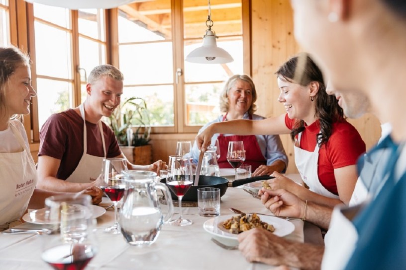L’obiettivo della Scuola di Cucina del Gallo Rosso è chiaro: far conoscere e valorizzare la cucina contadina tipica dell’Alto Adige, capace di unire l’anima alpina a quella mediterranea, e, allo stesso tempo, rendere il momento condiviso del cucinare e del mangiare insieme, unico, arricchente e sorprendente.