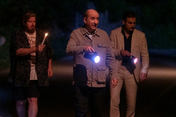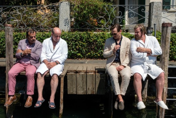 Tre amici, Beppe, Umberto e Gigi, attendono l’arrivo del giovane Toni per festeggiare la sua ritrovata libertà. Umberto è un musicista fallito, ha mandato in malora l’azienda del padre e ha già due separazioni alle spalle. Gigi è stato appena diseredato dalla zia, è ubriaco e indossa una delle sue vecchie parrucche in segno di protesta. Beppe ha una madre molto ingombrante, fa l’idraulico e si dice non abbia mai avuto una ragazza. Toni, figlio di Umberto, è un ragazzo fin troppo sveglio che entra ed esce dal carcere per piccoli reati. In altre parole: la più scombinata delle compagnie, in un microcosmo immutabile, nello stridente splendore di un lago. Qualcosa però sta per accadere. Un cataclisma dalle conseguenze sconvolgenti ed esilaranti. Dopo una serata ad alto tasso alcolico nel bar del paese, l’auto sulla quale stanno per tornare a casa colpisce qualcosa. O meglio, qualcuno. Dando inizio ad una serie di inesorabili scelte sbagliate, i quattro fuggono e si rifugiano a casa di Umberto. Sarà una lunga notte di colpi di scena, situazioni paradossali e ridicole, incontri e scontri tra i protagonisti e altre figure improbabili che popolano quella interminabile giornata. Fino alla più inimmaginabile delle soluzioni, che arriverà alle prime luci dell’alba.