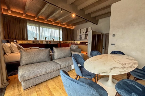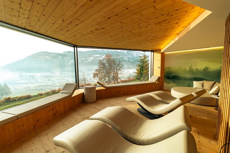 Il tutto con un occhio attento alla sostenibilità. Grande attenzione è stata dedicata all’efficienza energetica, garantita da pompe di calore, pannelli solari ed eco generatore, e all’utilizzo di risorse locali: alla realizzazione del resort hanno lavorato esclusivamente imprese e artigiani della valle.