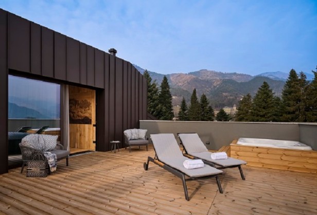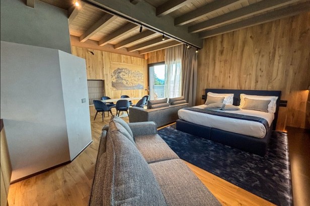 Punta di diamante del Relais è la Rooftop Suite, che interpreta il concetto di lusso contemporaneo in una chiave esclusiva: ingresso indipendente, terrazza affacciata sulla valle, vasca idromassaggio privata e accesso diretto dal garage (dotato di ricarica elettrica).