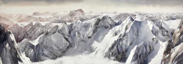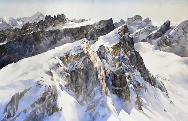 Esposti 30 acquerelli, anche di grandissime dimensioni, 2,3×4,5metri, dedicati ai luoghi delle Olimpiadi invernali. La pittura come linguaggio vivo per raccontare le montagne di Milano Cortina. Compaiono inoltre alcuni album preziosi dedicati agli studi e alla didattica, nonché fotografie dell’artista al lavoro. Il progetto espositivo e l’allestimento, firmati dall’architetto Michele Piva, puliti ed essenziali, sono di grande fascino e impatto e sottolineano il virtuosismo dell’artista. Il percorso è amplificato dalla presenza di una video-installazione prodotto da Alps che accompagna il pubblico alla scoperta dello sguardo peculiare dell’artista.