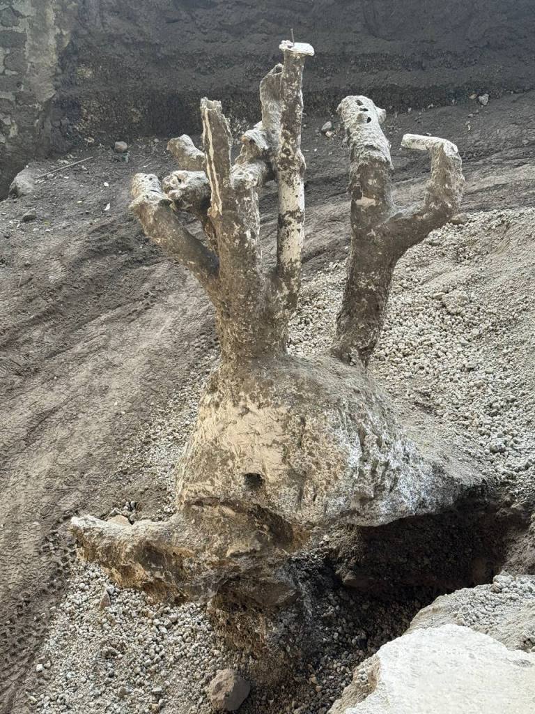 Grazie alla tecnica dei calchi, lo scavo ha anche restituito le impronte di alberi che ornavano il giardino, in posizione originale e inseriti in un preciso schema ornamentale, che raddoppiava il colonnato del porticato meridionale, richiamando schemi documentati nelle domus pompeiane e nello stesso sito di Oplontis.