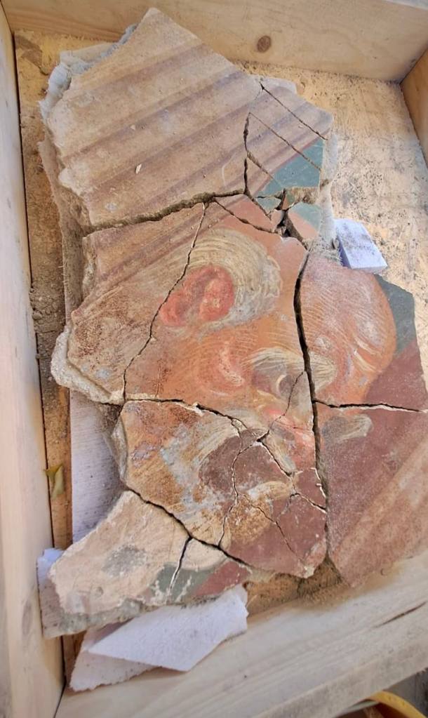 Tra le scoperte di particolare rilievo sono emersi una figura integra di una pavonessa, speculare all’esemplare maschio rinvenuto sulla porzione meridionale della stessa parete, e alcuni frammenti con la raffigurazione di una maschera scenica riconducibile a un personaggio della Commedia Atellana, a differenza di altri presenti nell’ambiente e attribuibili alla Tragedia.