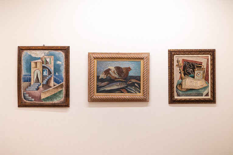 La mostra offre l’occasione di ammirare tre opere mai esposte in Italia, provenienti dal Musée di Grenoble, entrate nelle sue collezioni nel 1933 grazie alla donazione di Emanuele Sarmiento, mecenate italiano trapiantato in Francia dal 1912. Si tratta di I due pesci (1927) e Il piede romano (1927) di Filippo de Pisis e di Natura morta (Katinka) del 1932 di Mario Tozzi.