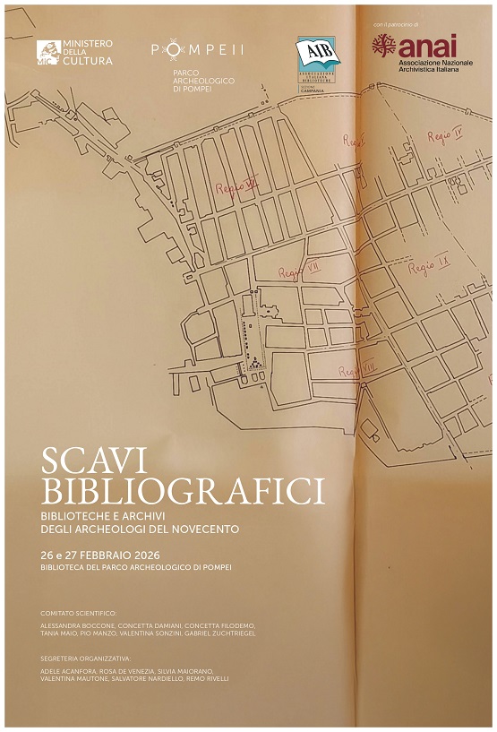 Dalla collaborazione del Parco Archeologico di Pompei con l’Associazione Italiana Biblioteche (Sezione Campania e Commissione nazionale biblioteche speciali, archivi e biblioteche d’autore) prende vita il Convegno Scavi bibliografici che si articola in due giornate tematicamente distinte ma complementari.