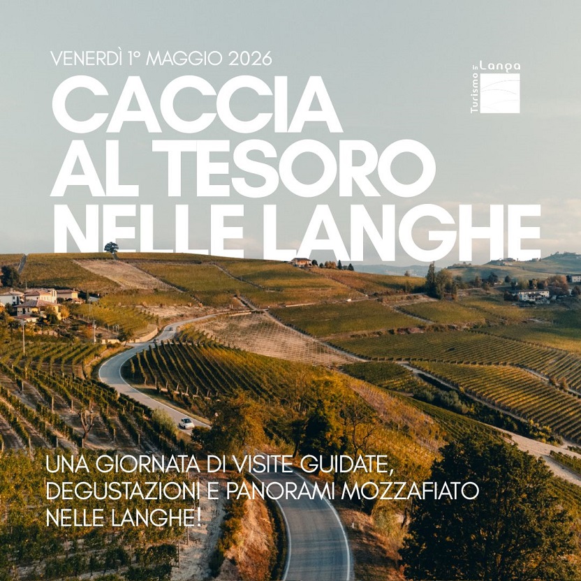 Venerdì 1° maggio 2026 tornerà la Caccia al Tesoro nelle Langhe ambientata tra le suggestive colline patrimonio UNESCO e la città di Alba, con un format sempre più dinamico ed entusiasmante. Quest’anno, per la prima volta, verrà proposto un itinerario family, un percorso interamente dedicato alle famiglie con bambini con attività pensate per far scoprire il territorio a grandi e piccini. Coloro che sono interessati a partecipare alla Caccia al Tesoro nelle Langhe possono iscriversi sul sito www.turismoinlanga.it, compilando l’apposito form d’iscrizione entro il 28 aprile 2026.
