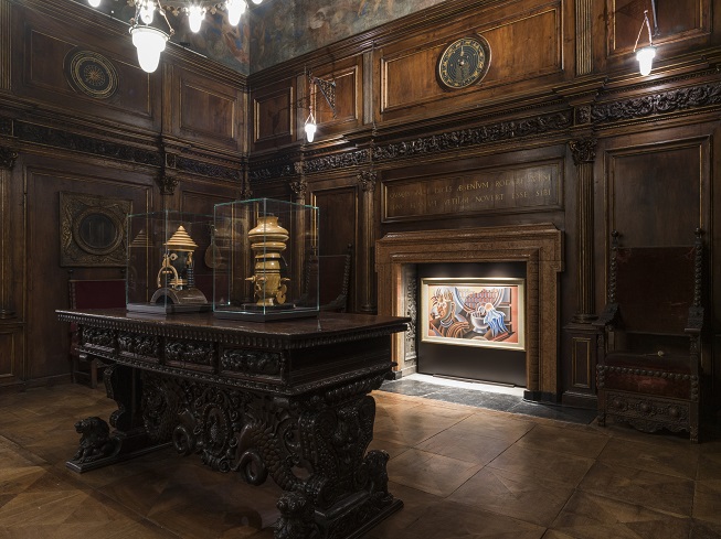 La comune capacità dei fratelli e dell’artista di mettere in relazione epoche remote e contemporaneità, rendendo possibile una visione corale ed omogenea, è la base di partenza su cui si è sviluppato il concept della mostra Depero Space to Space. La creazione della memoria. Le opere infatti non sono collocate come elementi estranei, ma entrano nella Casa Museo “piegandosi” allo spazio: quadri che sostituiscono temporaneamente opere storiche della casa, o che diventano “complemento” degli arredi Bagatti Valsecchi, presentandoli in maniera inattesa. Ogni stanza diventa un’esperienza che consente di vivere l’arte di Depero e lo spazio neorinascimentale concepito dai fratelli Bagatti Valsecchi con uno spirito nuovo.