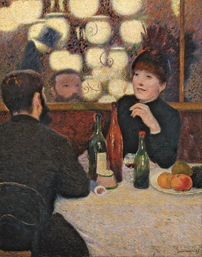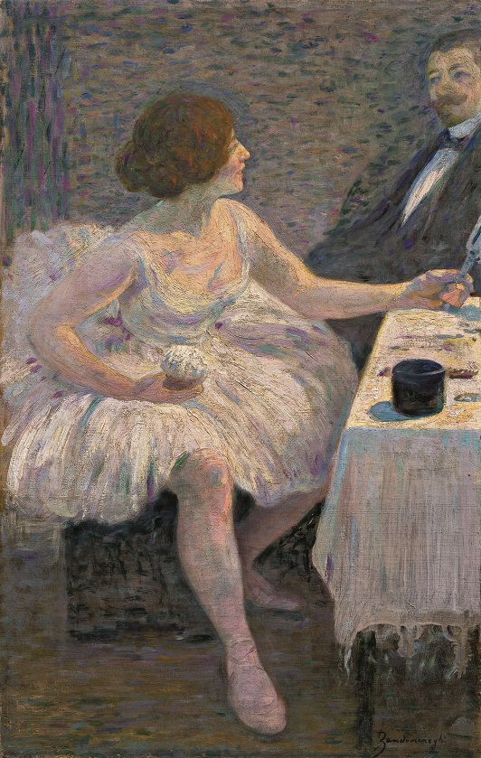 Entrato nel vivace ambiente del Caffè Nouvelle Athènes, Zandomeneghi si ritrova parte di un gruppo affiatato di artisti e intellettuali: Mary Cassatt, Forain, Rouart, Tillot, Madame Bracquemond, Raffaelli. Nel 1878 lo raggiunge l’amico critico Diego Martelli, che favorisce nuovi scambi con Degas, Duranty e Pissarro. L’anno successivo, Zandò espone alla quarta mostra impressionista, in avenue de l’Opéra, dove Martelli viene ritratto sia da Degas sia dallo stesso Zandomeneghi.