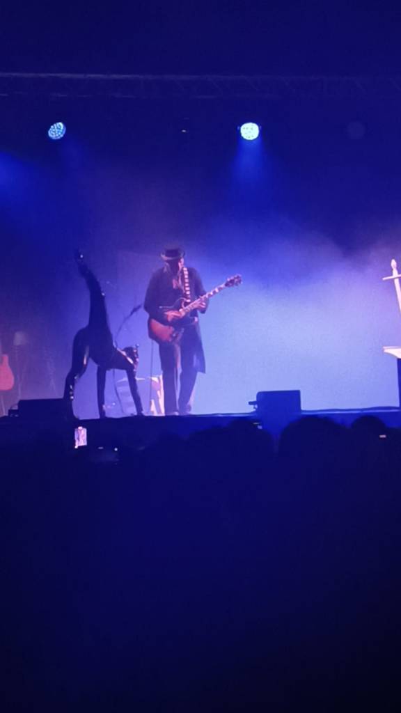 A luci spente, si è poi espansa nella sala l’iconica intro della serie di successo Mercoledì. Qui uno degli artisti ha cantato magistralmente la canzone dei The Cramps “Goo goo Muck”. Sullo sfondo una disturbante Mercoledì, che ha riprodotto l’iconico ballo del film, con movenze riconosciute da tutto il pubblico in sala.