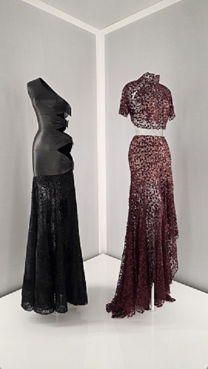 ​L’esposizione seziona la maestria dei due designer attraverso un’analisi tecnica rigorosa. Il percorso con 50 creazioni in mostra (25 per parte) si snoda perciò tra due reparti cardine della Haute Couture francese: l’Atelier Tailleur dove regna la struttura, e L’Atelier Flou, con il respiro della fluidità.
