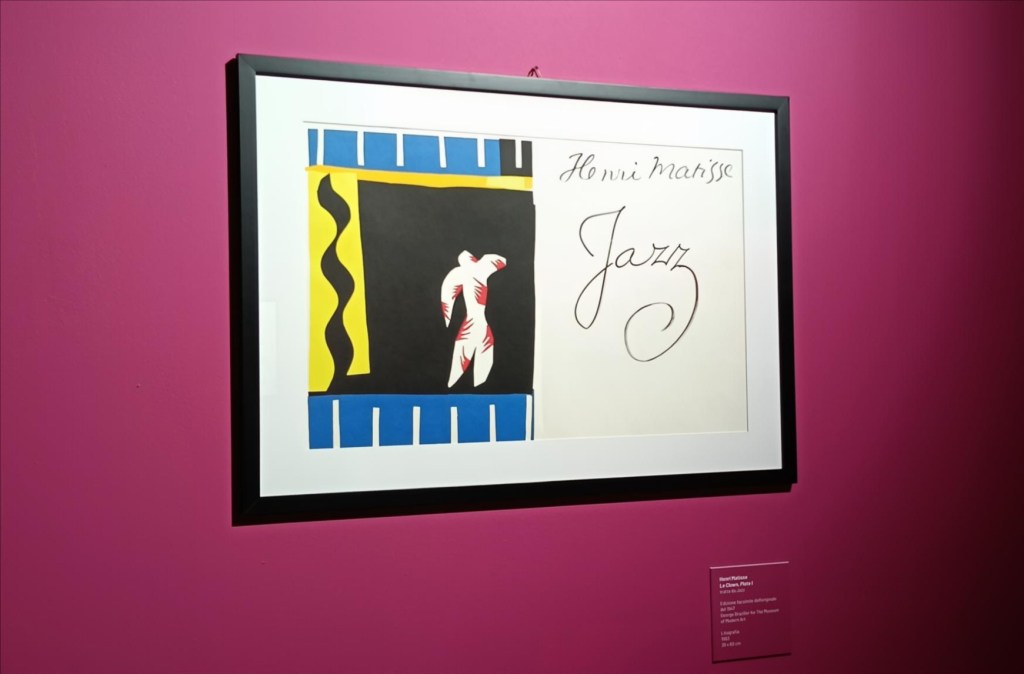 Sullo sfondo della Seconda Guerra Mondiale, in sedia a rotelle nel suo rifugio di Vence nel Sud della Francia, tra il 1943 e il 1944 Matisse realizza le 20 tavole litografiche del libro Jazz (Ed. Teriade, 1947). Inizialmente intitolato Le Cirque (Il Circo), poiché molti soggetti ritraggono acrobati e clown, Matisse scelse poi Jazz per richiamare l’affinità tra le sue forme colorate e le improvvisazioni ritmiche tipiche di quel genere musicale. Questa opera segna il passaggio definitivo ai ritagli di carta, con colori puri e vibranti, forme piatte ed essenziali che si uniscono a testi manoscritti a pennello, in una vitalità dell’arte e del colore contrapposta all’orrore della guerra. Particolarmente significative, in questo senso, sono le litografie Le Destin, Plate XVI; Icarus, Plate VIII; eLe Coeur, Plate VII.