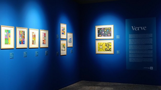 La prima sezione, Verve, dedicata alla rivista d’arte diretta da Tériade, documenta il sodalizio tra Matisse e l’editoria d’avanguardia. Dipingendo a guazzo fogli di carta poi ritagliati e ricomposti, dà vita ai celebri cut-outs (in francese papiers découpés) destinati a segnare una svolta decisiva nella storia dell’arte del Novecento e nella grafica. Tra le 44 litografie a colori e disegni in bianco e nero esposti, spiccano alcune delle sue opere più celebri: La Tristesse du Roi, La Gerbe, La Negresse eBleu Nu.