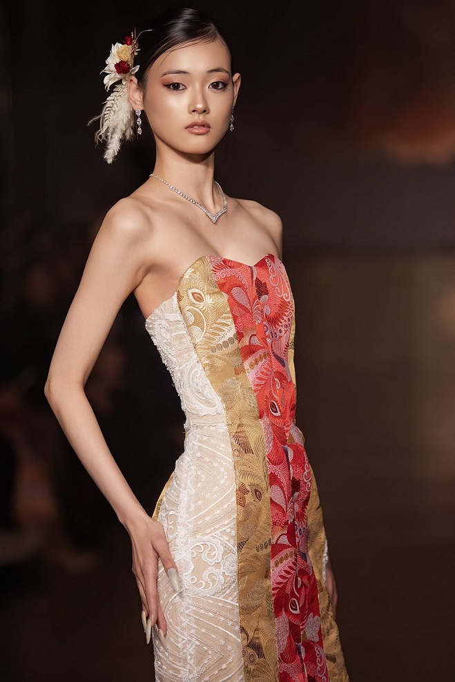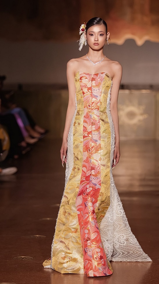 Nina Tsiklauri, georgiana con “anima” italiana, titolare del brand Unique Milano, ha presentato creazioni che sublimano la tradizione sartoriale in un’estetica sofisticata ed esclusiva, fondendo magistralmente la purezza della tradizione italiana con un linguaggio audace e contemporaneo. Formatasi sotto la guida del maestro Paolo Lentini, oggi Accademico Nazionale dei Sartori, ha realizzato nel suo atelier capolavori che incarnano l’incontro perfetto tra artigianalità e innovazione, trasformando ogni capo in un’esperienza di eleganza contemporanea. La stilista ha espresso una concezione del dettaglio che va oltre la mera decorazione, infondendo grinta e autorevolezza caratteriale in ogni cucitura, in ogni finitura, in ogni elemento che compone le sue collezioni, facendo sì che i particolari dialoghino con chi li osserva e li indossa, amplificando la personalità e la presenza di chi li sceglie. I suoi modelli si distinguono per una tensione estetica mozzafiato, dove ogni dettaglio sartoriale diventa un’affermazione di carattere e forza, raccontando una femminilità consapevole, determinata e profondamente elegante. Grazie a questa visione, la stilista si è affermata come una delle protagoniste più raffinate e visionarie della scena internazionale, confermando la propria firma come sinonimo di creatività, distinzione e impatto estetico memorabile.