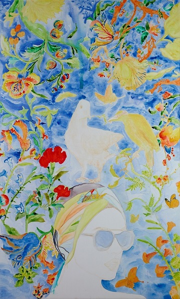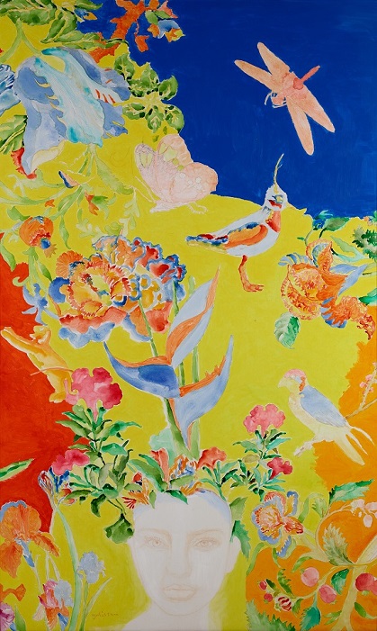 Il tempo, per Gulistan, non è una linea che procede in modo rettilineo e irreversibile, ma un giardino in cui ogni fiore rappresenta un momento di memoria, un frammento di civiltà, un codice culturale che continua a vivere e a trasformarsi; la sua pittura si fonda così su una concezione circolare dell’esistenza, dove passato e presente si compenetrano senza soluzione di continuità e dove Oriente e Occidente non vengono giustapposti come poli opposti, ma si fondono in una coesistenza profonda e simbiotica che attraversa temi, immagini e linguaggi. Un percorso in cui spazio mentale e spirituale, memoria, storia e immaginazione fioriscono invitando il visitatore a camminare tra le opere come in un paesaggio, seguendo un itinerario fatto di rimandi, stratificazioni e connessioni. Come scrive Gabriele Simongini, “Gulistan cerca la bellezza nell’evanescenza e nella fluidità figurale di ciò che è in sospeso. Sogni, ricordi, desideri e pensieri delle sue figure femminili e maschili si materializzano sopra e intorno ad esse in una fioritura di immagini che non sembra avere sosta, come una danza perpetua”.