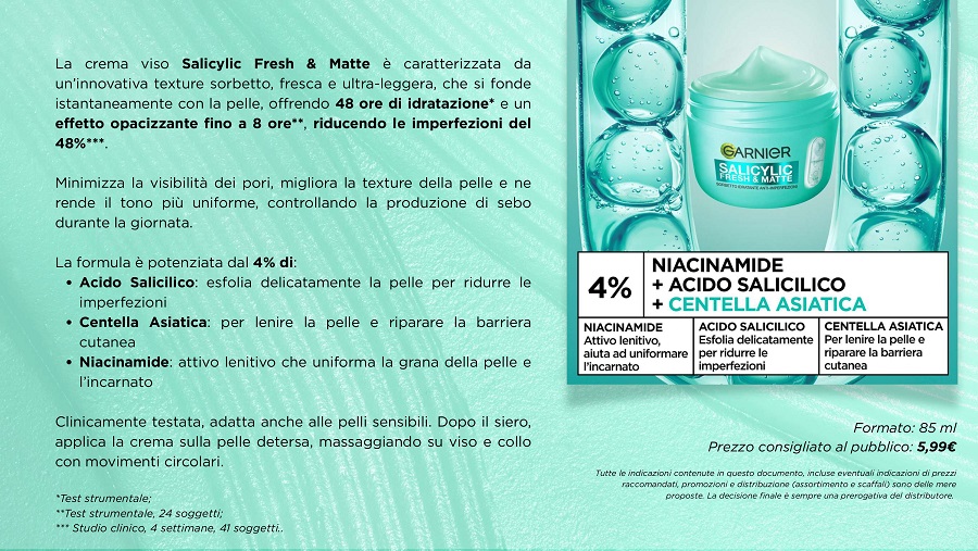 anti-imperfezioni e opacizzante, pensata per le pelli miste e grasse, con il 4% di niacinamide, acido salicilico e centella asiatica