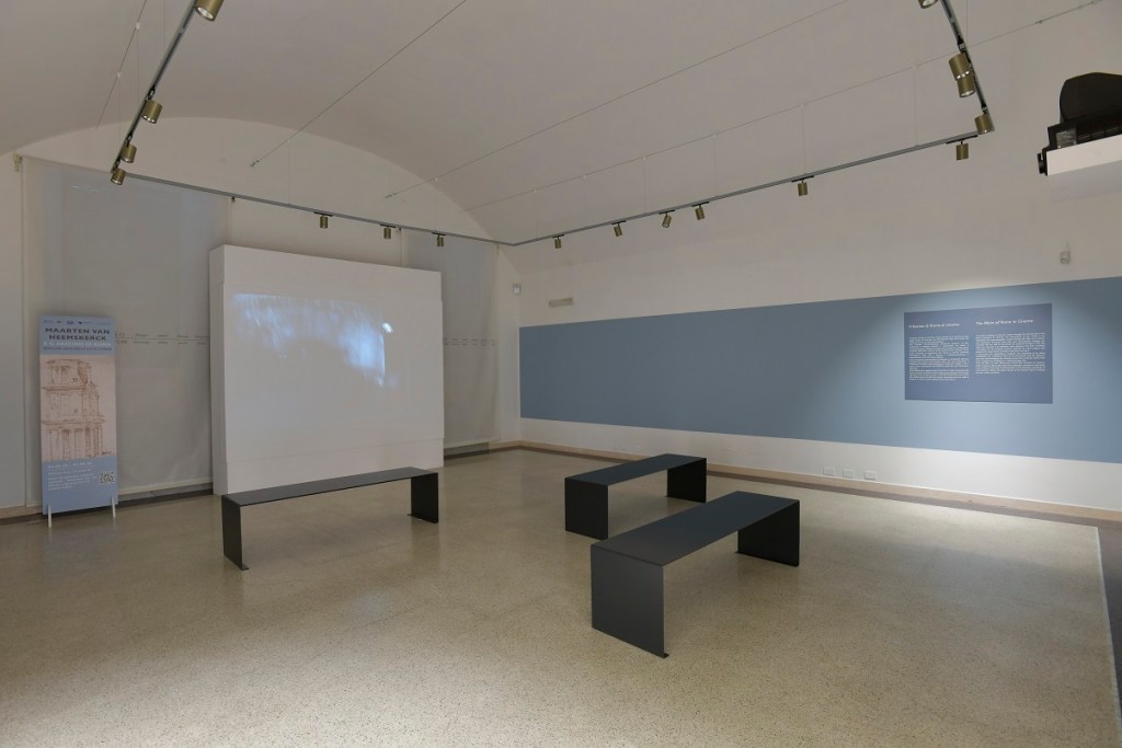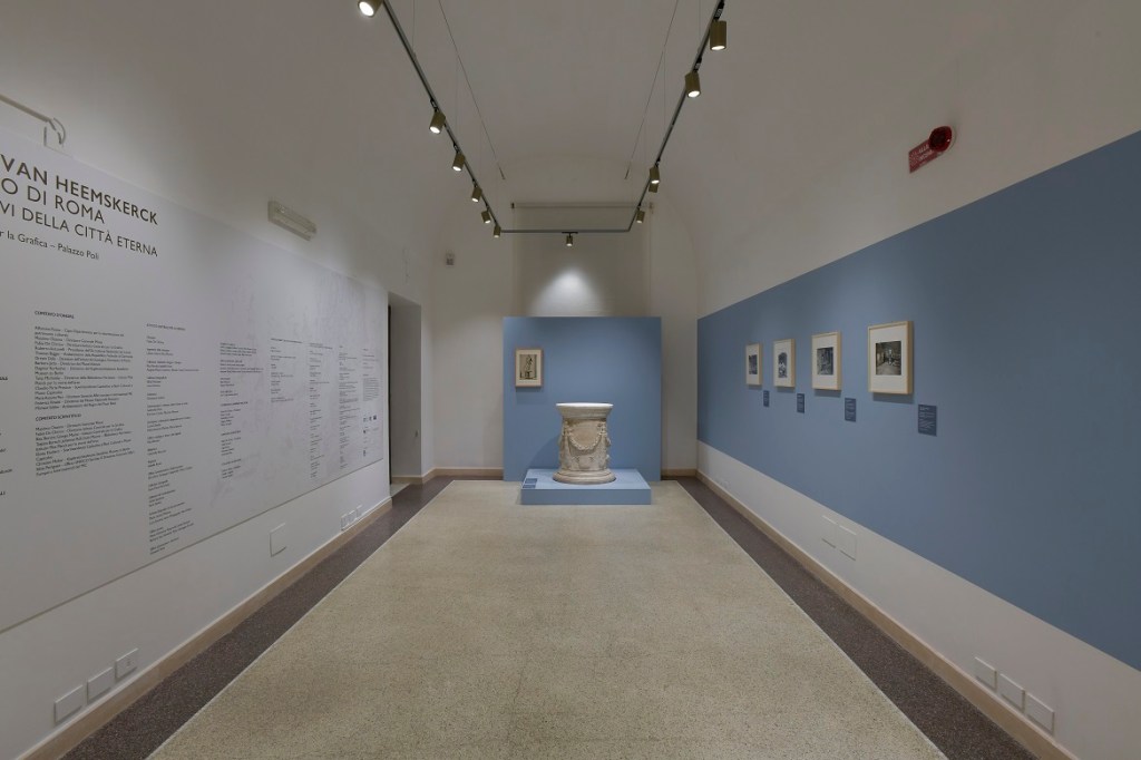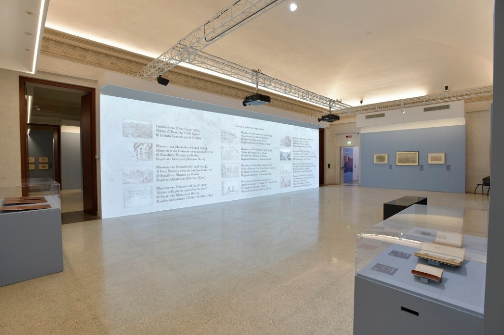 Il dialogo si arricchisce grazie a importanti prestiti: guide cinquecentesche e fotografie storiche della Bibliotheca Hertziana – Istituto Max Planck per la storia dell’arte, una selezione di sculture dai Musei Capitolini e un volume dell’Istituto Archeologico Germanico di Roma. Questi materiali consentono di mettere in relazionela narrazione visiva elaborata dall’artista nel XVI secolo con i modelli reali studiati durante il suo soggiorno, ricostruendo, a distanza di secoli, il confronto tra monumento e immagine, tra presenza fisica e traduzione grafica.