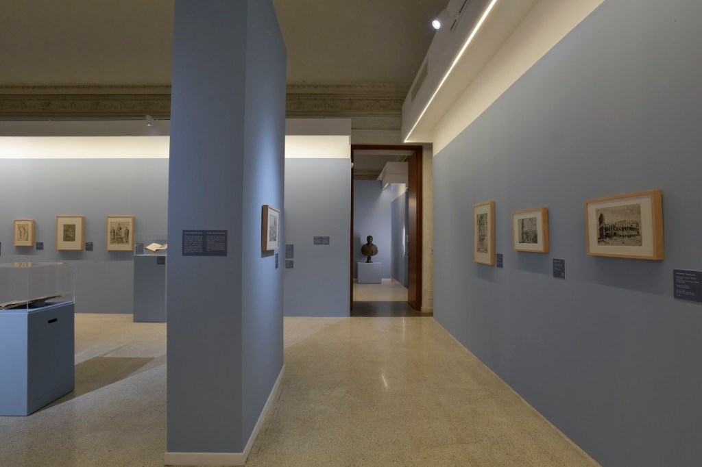Il percorso espositivo riunisce 140 opere tra disegni, stampe e matrici, affiancate da 20 fotografie antiche e 6 contemporanee, oltre a 2 video immersivi – con un montaggio di film, anche d’epoca, che raccontano il fascino di Roma – e una postazione multimediale: un itinerario articolato, che intreccia linguaggi e temporalità diverse, ponendo in dialogo l’esperienza del viaggio, la pratica del disegno e la costruzione dell’immaginario della Città Eterna.