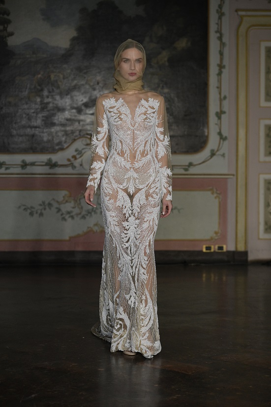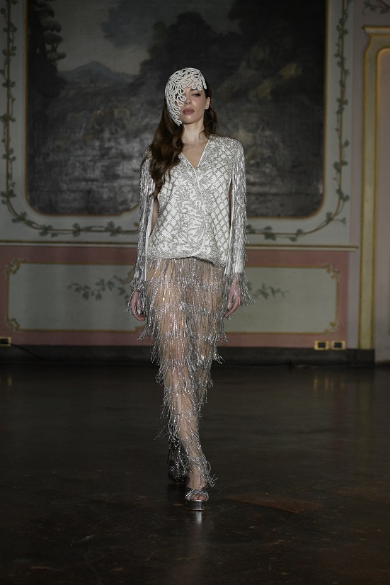 La collezione si contraddistingue per dei ricami mirabolanti e opulenti e fiori stilizzati.