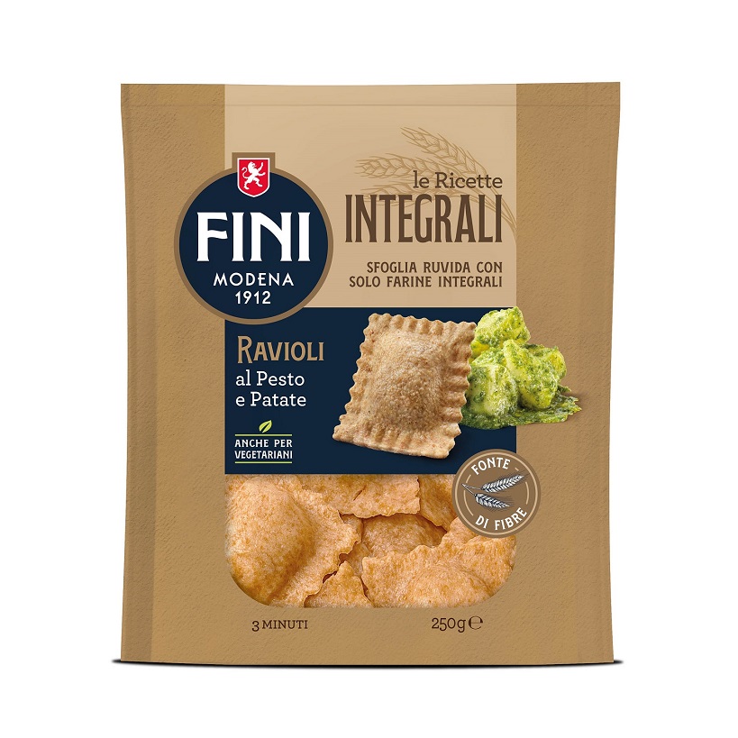 Da questa intuizione nasce la nuova linea FINI Le Ricette Integrali, l’unica gamma di pasta fresca ripiena realizzata esclusivamente con farina e semola integrale, fonte di fibre, con sfoglia grezza e porosa pensata per offrire un gusto rustico ed intenso. La gamma sarà offerta in un formato mainstream da 250 grammi, pari a due porzioni, presentato in una busta stand-up dal pack distintivo e coerente con il sistema grafico delle altre linee Fini. La gamma si compone di tre referenze selezionate per garantire rotazione e differenziazione: i Tortellini al Prosciutto Crudo e Parmigiano Reggiano, primo ripieno del mercato; i Ravioli di Carne con ripieno a base di carne arrosto, secondo ripieno per importanza; i Ravioli Pesto e Patate, con pesto al basilico e patate e formaggio con caglio microbico, ideali per un’alimentazione vegetariana.