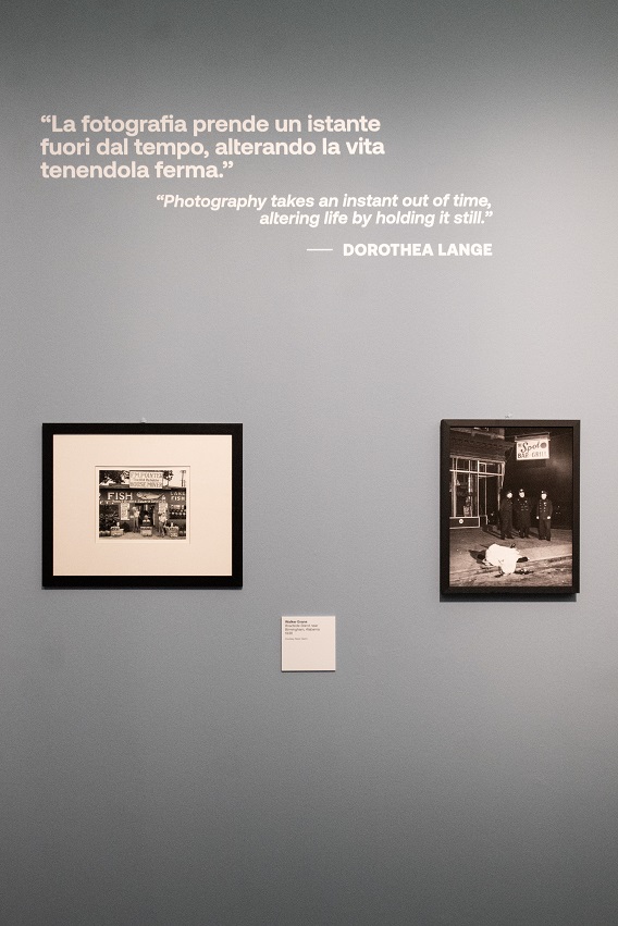 Seguendo la distinzione formulata da John Szarkowski al MoMA negli anni Sessanta, la mostra entra nella sua terza sezione, “Fotografia come documento”, dedicata alla fotografia Window: quella che osserva il mondo e registra gli eventi reali. In questo capitolo trovano spazio le immagini che hanno raccontato le guerre del Novecento, lo sbarco dell’uomo sulla Luna e, più in generale, quei momenti che hanno segnato in modo indelebile la storia contemporanea. In questa sezione trovano spazio alcune delle immagini più emblematiche della storia contemporanea: dalla Migrant Mother di Dorothea Lange (1936), icona assoluta della Grande Depressione e simbolo universale della fragilità e della resilienza umana, allo storico sbarco dell’uomo sulla Luna (1969), simbolo assoluto della conquista scientifica e del potere delle immagini come prova dell’impossibile. Si prosegue con la forza drammatica della caduta del Muro di Berlino, immortalata nel 1989 da Carol Guzy, che documenta la gioia e la fragilità di un momento di svolta epocale, fino alle ferite dell’11 settembre, catturate da Joel Meyerowitz a Ground Zero nel 2001, unico fotografo autorizzato a oltrepassare le barriere di sicurezza per mostrare al mondo l’impatto emotivo e materiale dell’attacco. Sono immagini che hanno scosso coscienze e contribuito a costruire la nostra memoria collettiva: nel Novecento il fotografo era davvero l’“occhio del mondo”. La sezione accoglie anche alcune fotografie di Martín Chambi provenienti dall’archivio del MUDEC, conservato nelle collezioni del Museo. Queste immagini rappresentano una testimonianza preziosa del suo straordinario lavoro di documentazione delle comunità andine tra il 1927 e il 1944: attraverso uno sguardo rigoroso e poetico, Chambi ha saputo restituire con rara intensità la dignità, la forza culturale e l’identità dei popoli del Perù, offrendo un contributo fondamentale alla storia della fotografia documentaria latino- americana.