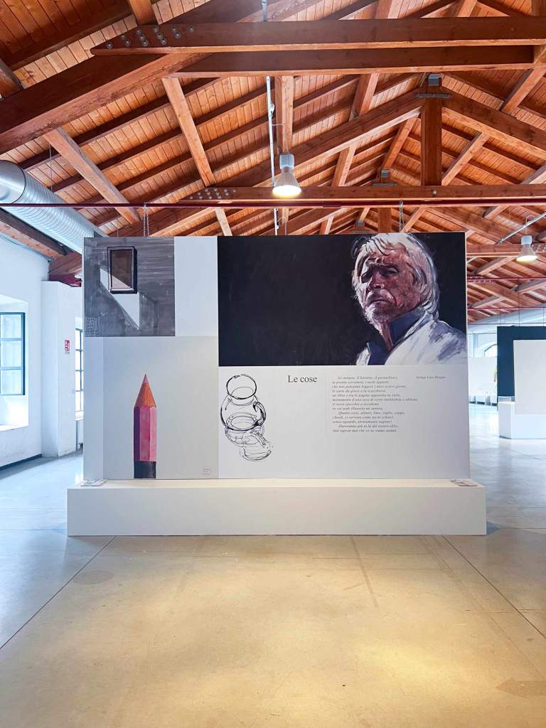 Sul valore delle “cose”, che Luca mette in luce nelle sue opere, c’è una citazione di Jorge Luis Borges che sembra essere immaginata dal grande scrittore e poeta argentino guardando i ritratti di “cose” di Luca Vernizzi. Scrive Borges: “Le monete, il bastone, il portachiavi, la pronta serratura, i tardi appunti che non potranno leggere i miei scarsi giorni, le carte da gioco e la scacchiera, un libro e tra le pagine appassite una viola, monumento d’una sera di certo inobliabile e obliata, il rosso specchio a occidente in cui arde illusoria un’aurora. Quante cose, ci servono come taciti schiavi, senza sguardo, stranamente segrete! Dureranno più in là del nostro oblio; non sapran mai che ce ne siamo andati”.