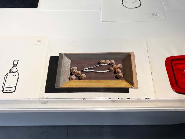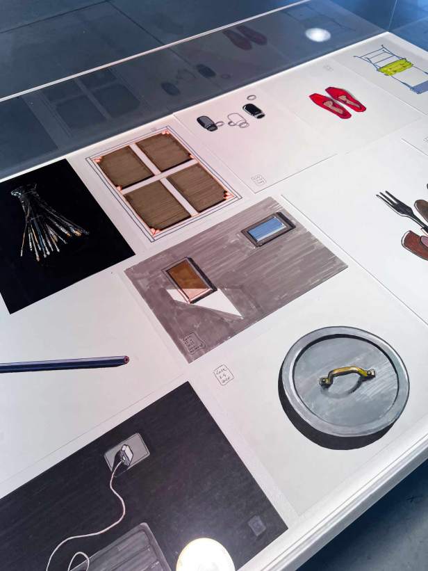 Le opere su carta sono una raccolta su oggetti che vivono all’interno di ogni casa, il libro, la matita, un bicchiere, il vassoio, la finestra, una sedia, la scatola di cartone, la bottiglia della Coca-Cola, i barattoli di vernice, le mollette del bucato, la tanica della benzina. È un racconto della vita e della società contemporanea che si svolge attraverso opere che enfatizzano gli oggetti che ci circondano, quelli più comuni e banali che Luca ritrae immersi in uno spazio totalmente vuoto, lasciandoli dialogare con lo spettatore a cui si presentano nella loro totale dismisura.
