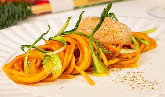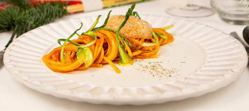 Protagonista del piatto è Trighetto, lo spaghetto triangolare La Molisana studiato per garantire tenacità alla masticazione e resistenza in cottura. Ha la caratteristica di rimanere sempre leggermente al dente creando una sensazione molto rustica e piacevolissima al palato; è un formato assolutamente unico grazie alla sua forma accattivante ed originale, che spezza la routine dello spaghetto, e alla sua superficie ruvida che cattura perfettamente il condimento della ricetta “Trighetto con bisque di gamberi”.