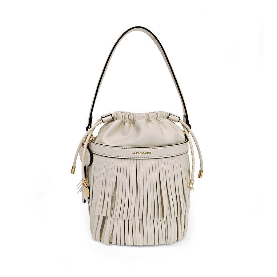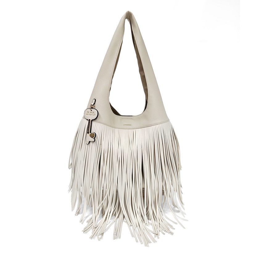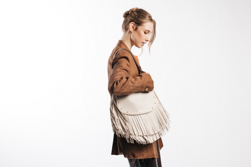 La Fringe Bag, in morbida ecopelle bianca o tabacco, è perfetta per look urbani, appuntamenti di lavoro o brunch tra amici, aggiungendo un tocco moderno e deciso a qualsiasi outfit.