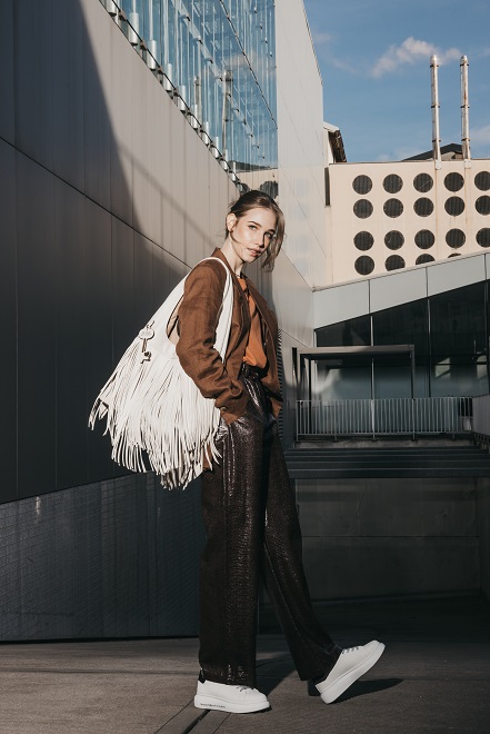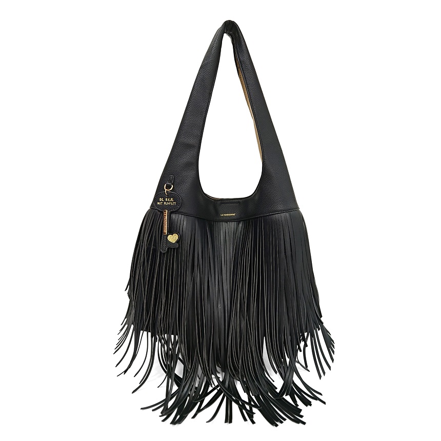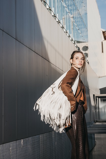Le frange diventano un dettaglio iconico, capace di animare ogni gesto e di trasformare la borsa in un vero e proprio statement di stile: ogni modello racchiude la filosofia del brand, borse che non seguono la moda, ma la interpretano, combinando creatività, tendenza e carattere.