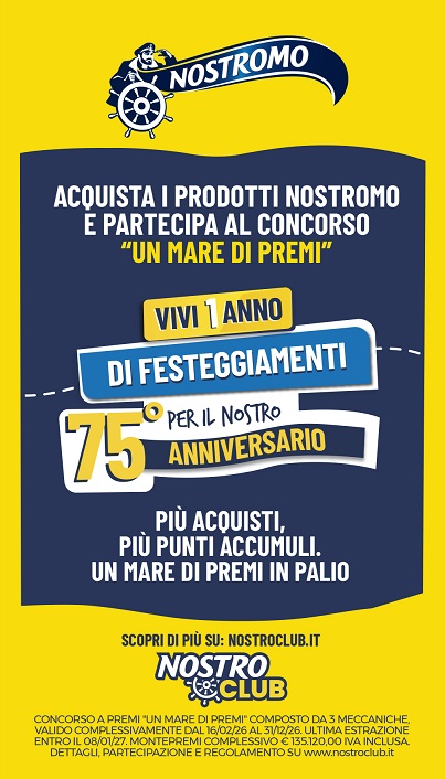 “Il 2026 è un anno speciale per Nostromo e abbiamo voluto celebrarlo insieme a chi ci sceglie ogni giorno – ha sottolineato Francesca Ganassi, Marketing Manager di Nostromo. Con questi concorsi a premi vogliamo ringraziare i nostri consumatori per la fiducia e la fedeltà che ci hanno sempre dimostrato, trasformando ogni acquisto in un’esperienza di gusto, gioia e sorpresa. È un approccio coerente con i nostri valori: Nostromo punta da 75 anni non solo sulla qualità del prodotto, ma anche sulla capacità di creare intrattenimento e socializzazione per tutta la famiglia”.