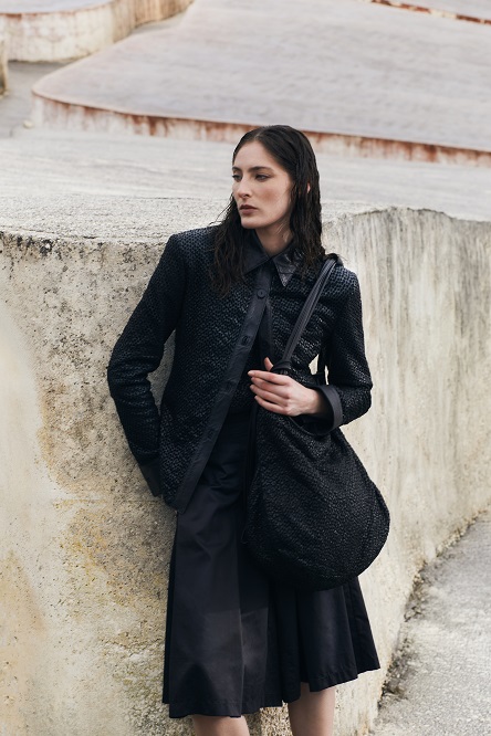Dal segno nasce il paesaggio. Dove la memoria si fa gesto e la moda diventa architettura. I capi, sia strutturati che fluidi, sono pensati per accompagnare il movimento con naturalezza. Ogni dettaglio è curato per esaltare la silhouette con un’aura vintage legata all’archivio di Malloni: un’eredità che evolve senza nostalgia.