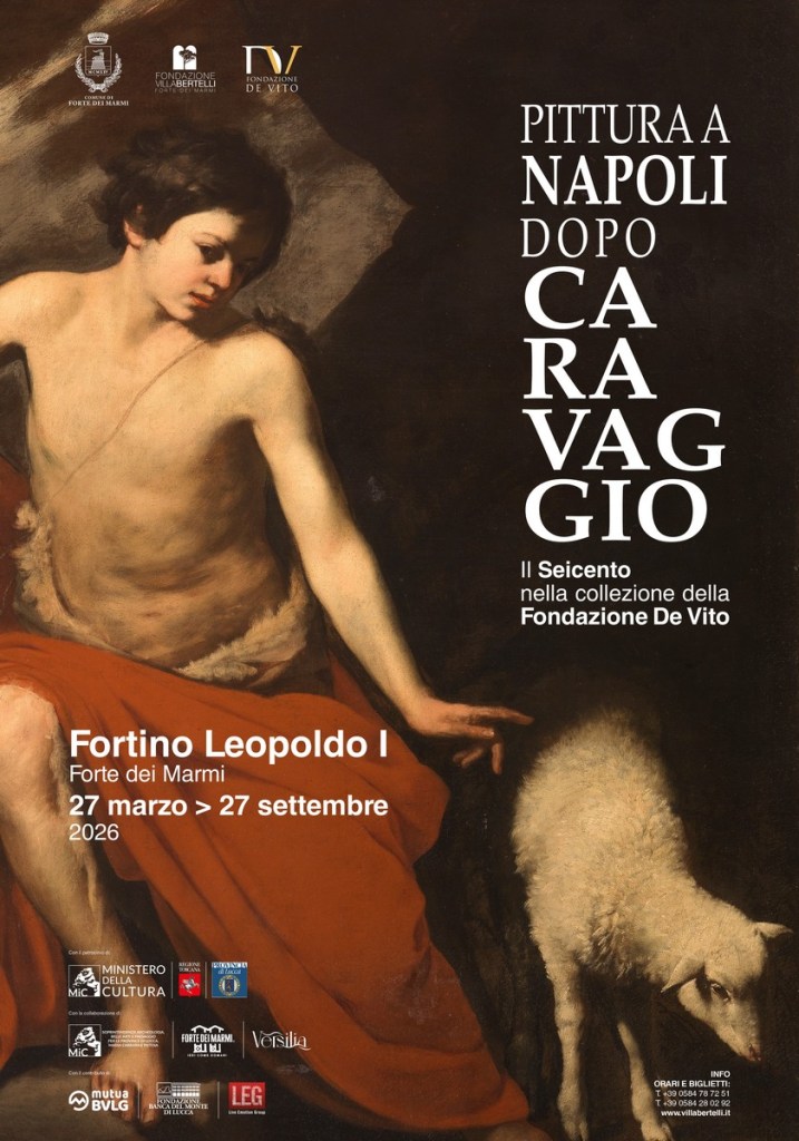 Fino al 27 settembre 2026, il Forte Pietro Leopoldo I (Piazza G. Garibaldi 9A, Forte dei Marmi, Lucca) ospita l’esposizione “Pittura a Napoli dopo Caravaggio. Il Seicento nella collezione della Fondazione De Vito”, promossa dal Comune di Forte dei Marmi e dalla Fondazione Villa Bertelli, in collaborazione con la Fondazione Giuseppe e Margaret De Vito per la Storia dell’arte moderna a Napoli. La mostra è curata da Nadia Bastogi, storica dell’arte specializzata sulla pittura del Seicento e direttrice scientifica della Fondazione De Vito.