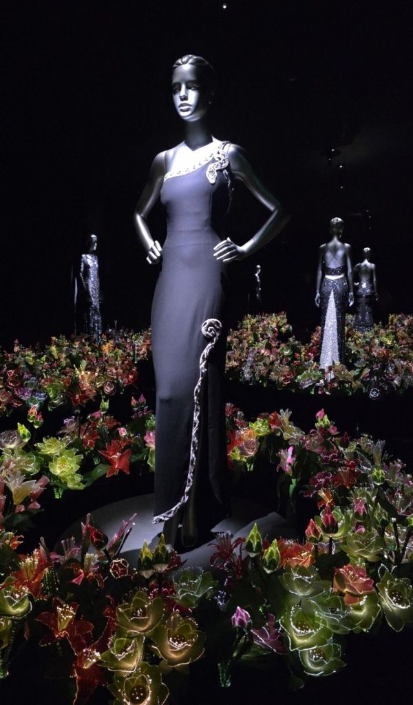 Da una parte la disciplina sacrale, le linee pure e l’eccellenza sartoriale di Valentino e dall’altra le forme organiche, esuberanti e quasi magiche della Vasconcelos.