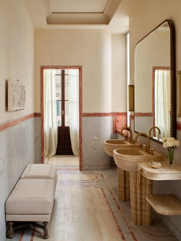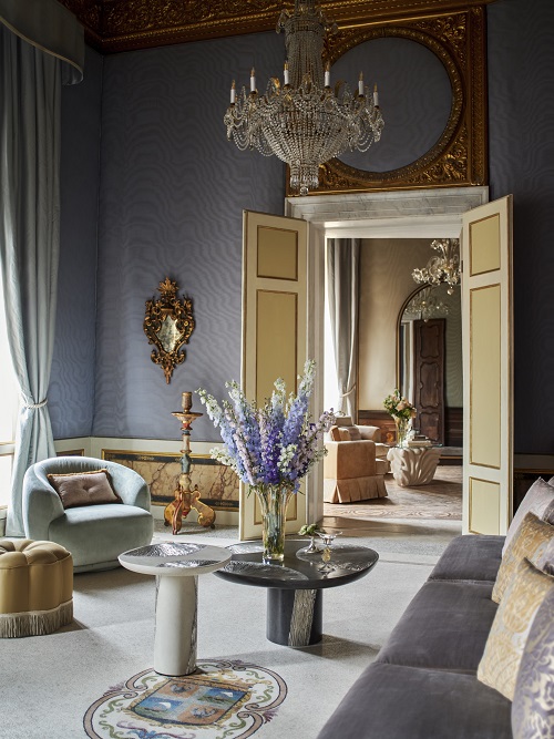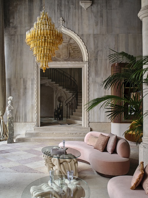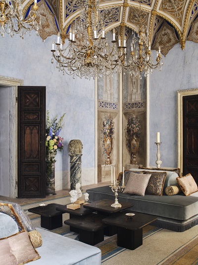 La visione creativa di Aline Asmar d’Amman si fonda su un equilibrio sofisticato tra memoria e contrasto, dove l’architettura è pensata come un gesto narrativo. Ogni intervento nasce da una scelta consapevole che mette in relazione passato e presente, essenza e immaginazione, senza mai tradire l’identità del luogo. Interventi architettonici audaci dialogano con dettagli di straordinaria raffinatezza; gli affreschi storici convivono con forme scultoree contemporanee, mentre riferimenti storici si riflettono all’infinito in superfici specchiate dalle tonalità velate. Una selezione di marmi pregiati, lavorati con maestria artigianale, si integra armoniosamente con la struttura del Palazzo, creando attimi di meraviglia artistica. I celebri “Colori Persi” di Venezia riaffiorano con delicatezza, intrecciati in tessuti, tendaggi, arredi e finiture, trasformando i saloni storici del Piano Nobile in una sequenza di ambienti scenografici, scanditi dall’inserimento scenografico di ampi cabinet de curiosités.