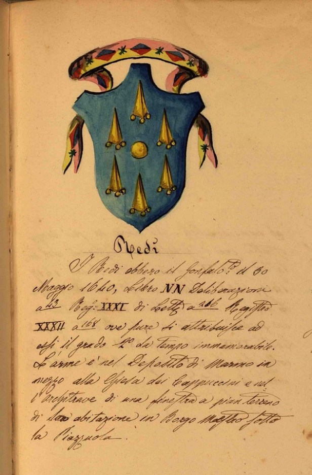 Un’attenzione particolare è dedicata alle origini familiari e al rapporto con la città natale. Primogenito di nove figli di Gregorio Redi e Cecilia de’ Ghinci, Francesco nacque ad Arezzo il 18 (o forse il 25) febbraio 1626 e fu battezzato nella Chiesa di Santa Maria della Pieve. Il padre, medico affermato, si trasferì con la famiglia a Firenze nel 1642, dove ottenne la cittadinanza fiorentina e ricoprì anche il ruolo di archiatra granducale. La famiglia Redi apparteneva al patriziato cittadino e possedeva diversi beni e proprietà, tra cui la villa degli Orti e il palazzo in Borgo Maestro. Nonostante la lunga permanenza a Firenze, Redi mantenne sempre un forte legame con la sua città d’origine. Non si sposò e non ebbe figli e per tutta la vita rimase profondamente legato ad Arezzo, alla quale destinò frequenti donazioni di libri, denaro e oggetti preziosi. Contribuì in modo significativo all’accrescimento della biblioteca della Fraternita dei Laici e alla costituzione della biblioteca del Collegio dei Gesuiti fondato in città nel 1687. Inoltre, grazie al prestigio acquisito negli ambienti culturali della corte medicea, divenne spesso il punto di riferimento per molti corrispondenti aretini che si rivolgevano a lui per questioni culturali o amministrative.